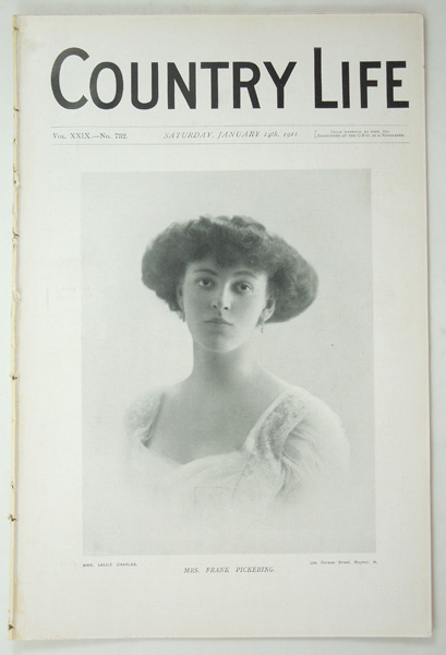 Country Life magazine dated January 14th 1911 featuring a main article on The Abbot's Grange and Russell House, Broadway in Worcestershire, The Residence of Mr. F. D. Millet. An eight page write up with black and white illustrations of the building (interior and decor, exterior and grounds). The magazine is in very good condition with a portrait frontispiece of Mrs. Frank Pickering.