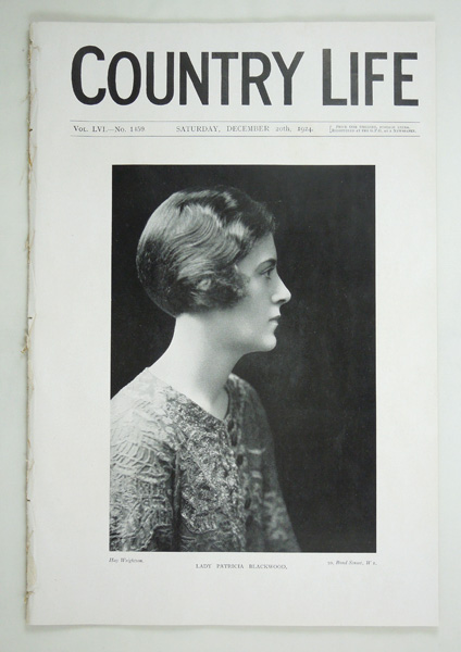 An original very early issue of Country Life Magazine dated December 27th 1924 featuring a main article on Encombe House (Part 1) in Kent. 8 page write up with black and white illustrations of the property, exterior and gardens. This issue is in very good condition with a lovely portrait frontispiece of Lady Patricia Blackwood.