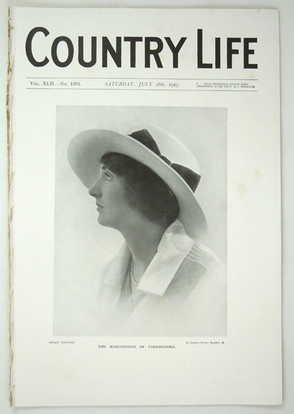 Country Life magazine dated July 28th 1917 featuring a main article titled The Gardens of Mounton House, Chepstow by Mr H. Avray Tipping. A seven page write up with black and white illustrations of the gardens, including the colonnade border, the gallery wing and west garden and the pergola garden as it was at the time of publication in 1917. This issue is in very good condition with a portrait frontispiece of The Marchioness of Carisbrooke.